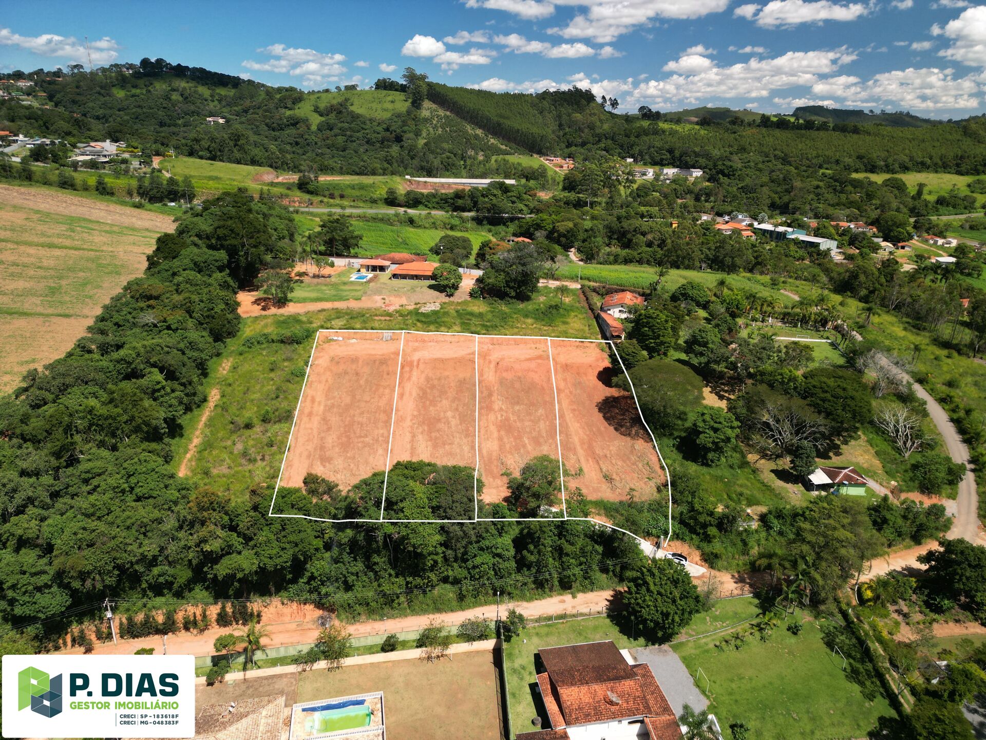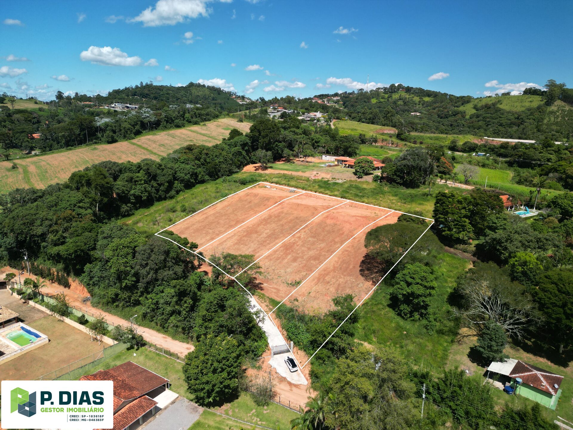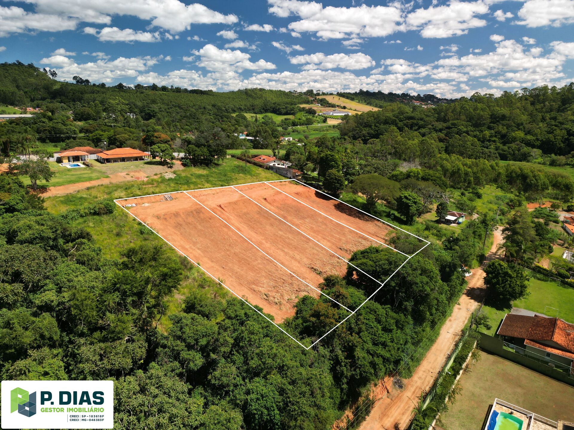 - Platô pronto para construção: Terreno nivelado e preparado, facilitando projetos residenciais ou de lazer.